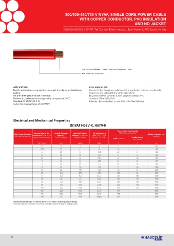 Nominal area of the Overall diameter Cable Unit Weight DC resistance @ / Akım Taşıma Kapasitesi “