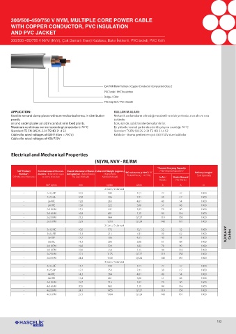 SAP Product Nominal area of the con- Overall diameter of Bund- Cable Unit Weight (approx.) / Akım Taşıma Kapasitesi “