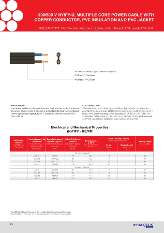 450/750V olan kablolar Cables for rated voltages of 450/750V