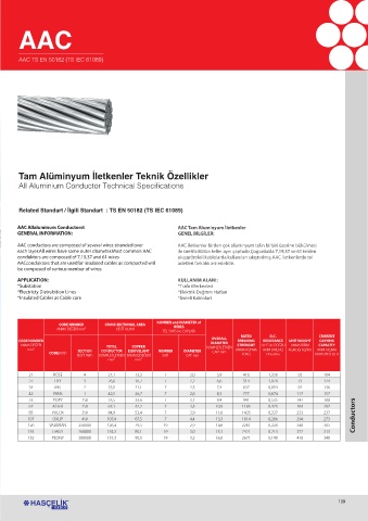 AACconduktors that are usedfor insulated cables as compacted wiil adetleri farklılık arz edebilir.