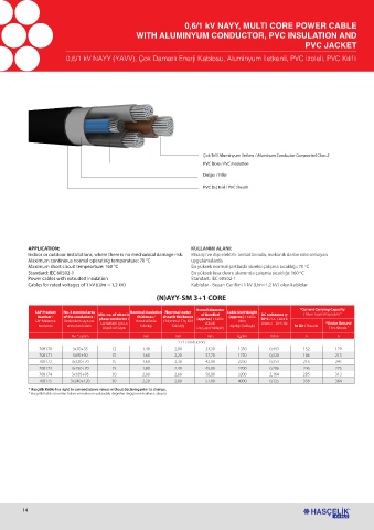 SAP Product No. X nominal area Min. no. of wires in Nominal insulation Nominal outer of Bundled Cable Unit Weight DC resistance @ / Akım Taşıma Kapasitesi “