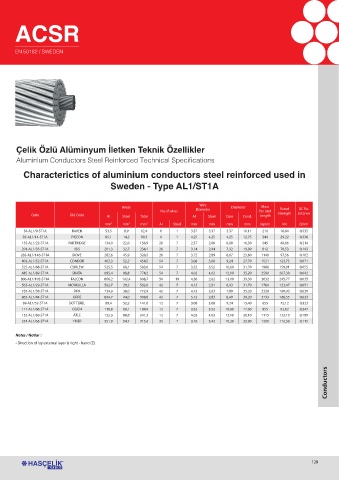 Çelik Özlü Alüminyum İletken Teknik Özellikler