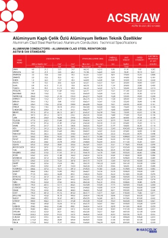 Alüminyum Kaplı Çelik Özlü Alüminyum İletken Teknik Özellikler