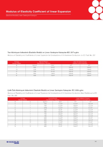 Tam Alüminyum iletkenlerin Elastisite Modülü ve Lineer Genleşme Katsayıları IEC 207’a göre