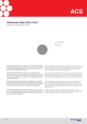 Aluminium Clad Steel ( ACS) wire consists of a central steel core with a layer Aluminyum kaplı çelik (Aluminyum Clad - ACS) merkezi çelik tel üzerine yük-