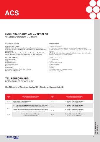 2. ACS Wire Test ltems: 2. ACS Teller için testler: