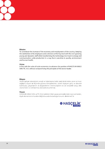 HASÇELİK KABLO SAN. ve TİC.A.Ş.’yi sektörün lideri yapan prensiplerinden taviz vermeden,