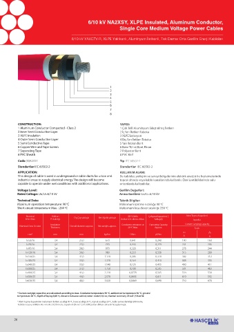 * Akım taşıma kapasiteleri maksimum iletken sıcaklığı 90 o C, hava sıcaklığı 30 o C, toprak sıcaklığı 20 o C, kablo serme derinliği 0,80 metre,