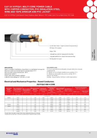 0,6/1 kV NYFGbY,Çok Damarlı Enerji Kablosu, Bakır İletkenli, PVC izoleli, Çelik Tel ve Bant Zırhlı, PVC Kılıflı