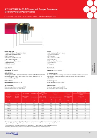 Rated Coltage: Uo/U=8,7/15 kV Anma Gerilimi: Uo/U=8,7/15 kV