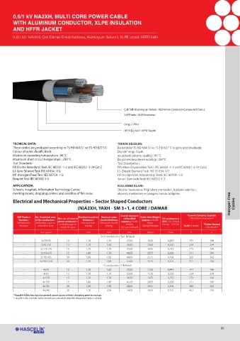 Electrical and Mechanical Properties – Sector Shaped Conductors Halogen Free Cables